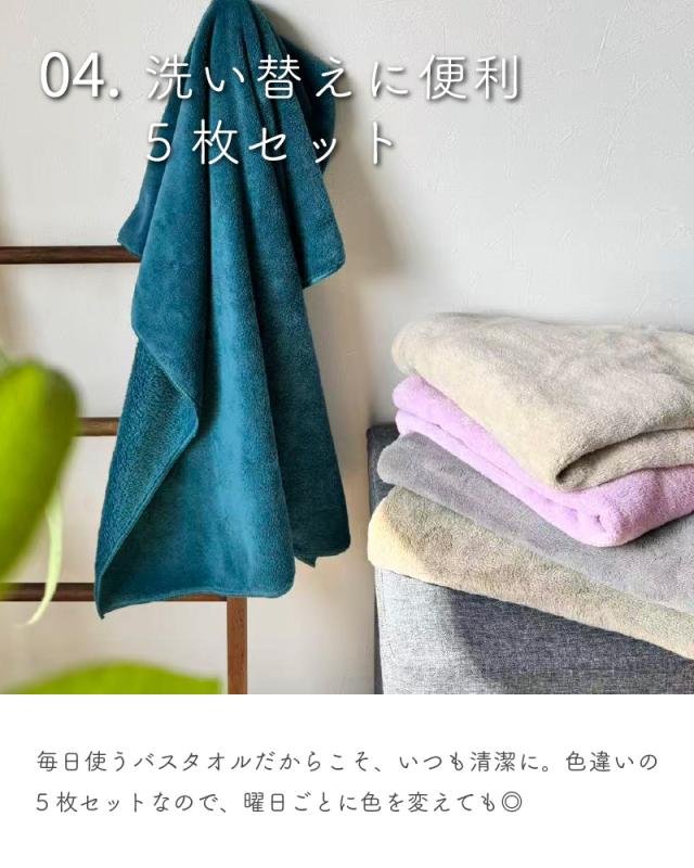 【5枚組】 バスタオル 5枚セット マイクロファイバー タオル 吸水 速乾 乾燥 プールタオル プール 海水浴 マイクロ バスタオル お得 速乾タオル 120×60cm セット シンプル 吸水力 吸水タオル ミニバスタオル やわらか ふわふわ まとめ買い