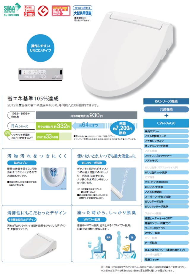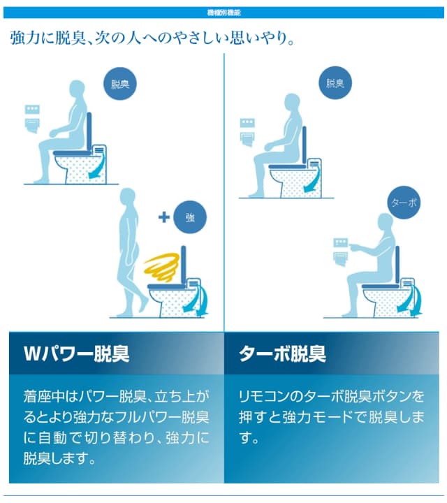 脱臭、暖房便座、使う人のことを考えた思いやり機能。