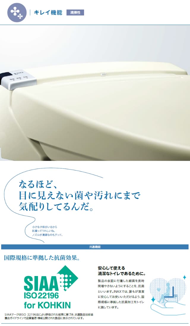 国際規格準拠の抗菌効果。重要なノズルの清潔性もしっかり。