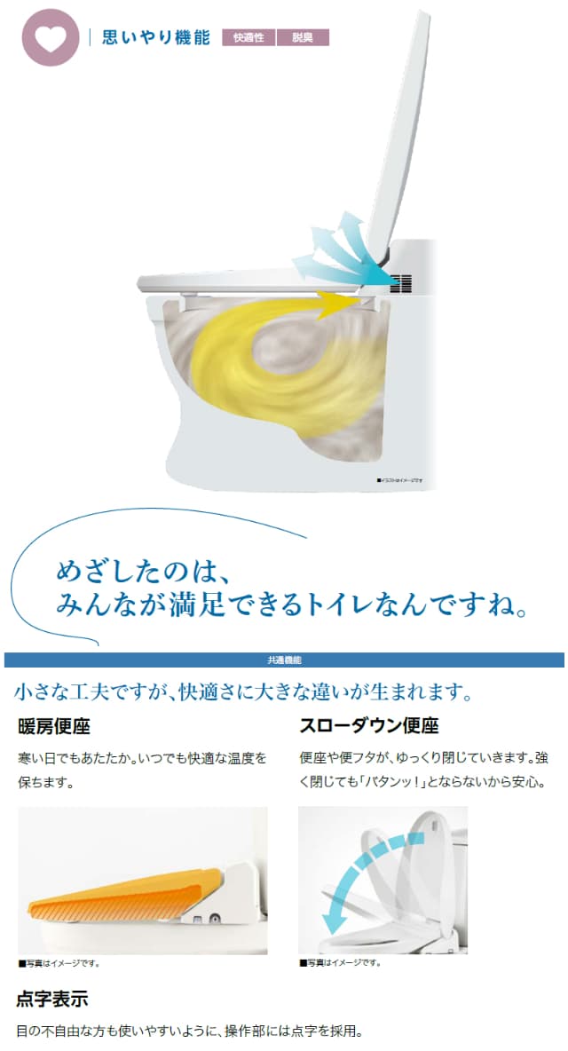 脱臭、暖房便座、使う人のことを考えた思いやり機能。
