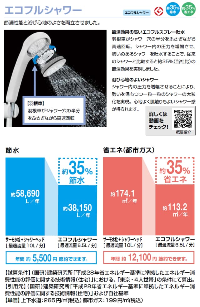 - 節湯性能と浴び心地のよさを両立させた「エコフルシャワー」。
