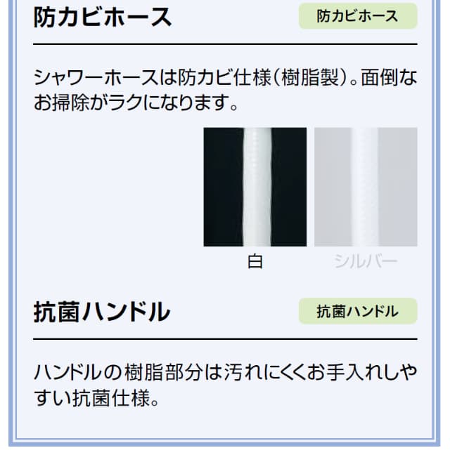 - シャワーホースはカビによる汚れが付きにくい防カビ仕様。