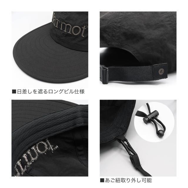 マーモット キャップ つば長 メンズ 男女兼用 Marmot ロングビル ブランド ロゴ 帽子 吸水速乾 UVカット ゴープコア 登山 軽量 ナイロン アウトドア 長め 釣り