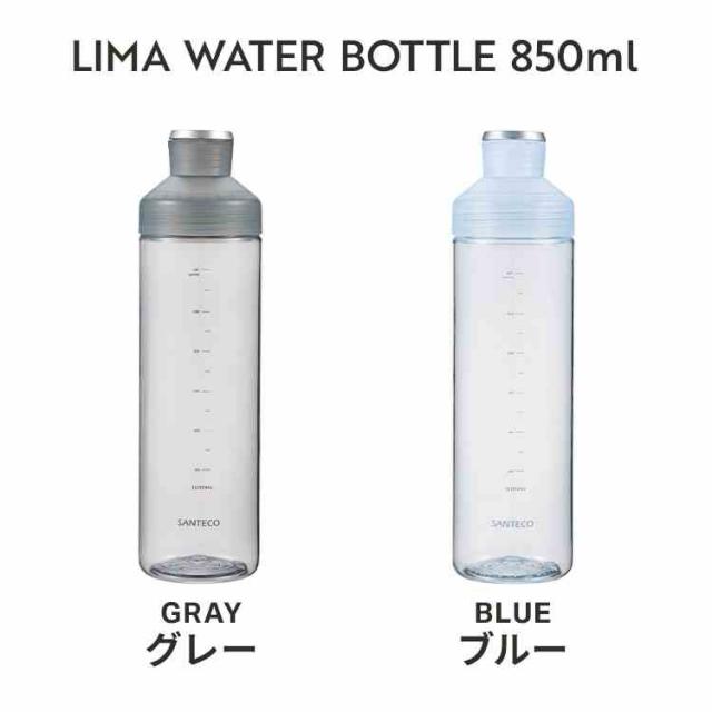 ウォーターボトル LIMA SANTECO サンテコ クリアボトル 水筒 850ml 洗いやすい 目盛り 軽量 持ち運び 耐熱 直飲み 割れにくい 透明 水 茶 常温 丈夫 BPAフリー トライタン スリム おしゃれ 通勤 通学 スポーツ ジム ヨガ サウナ 登山 グレー ブルー メンズ レディース
