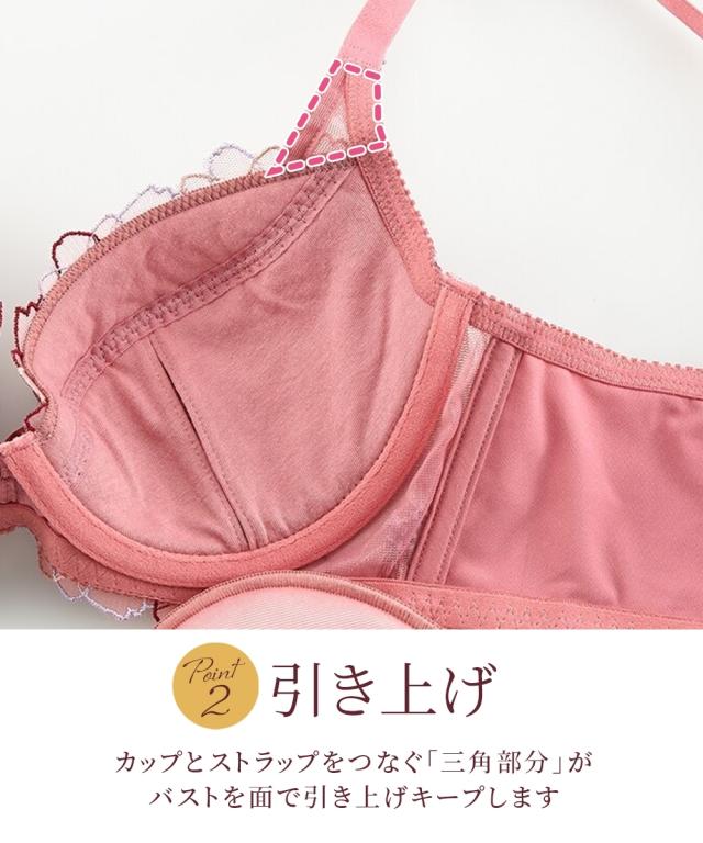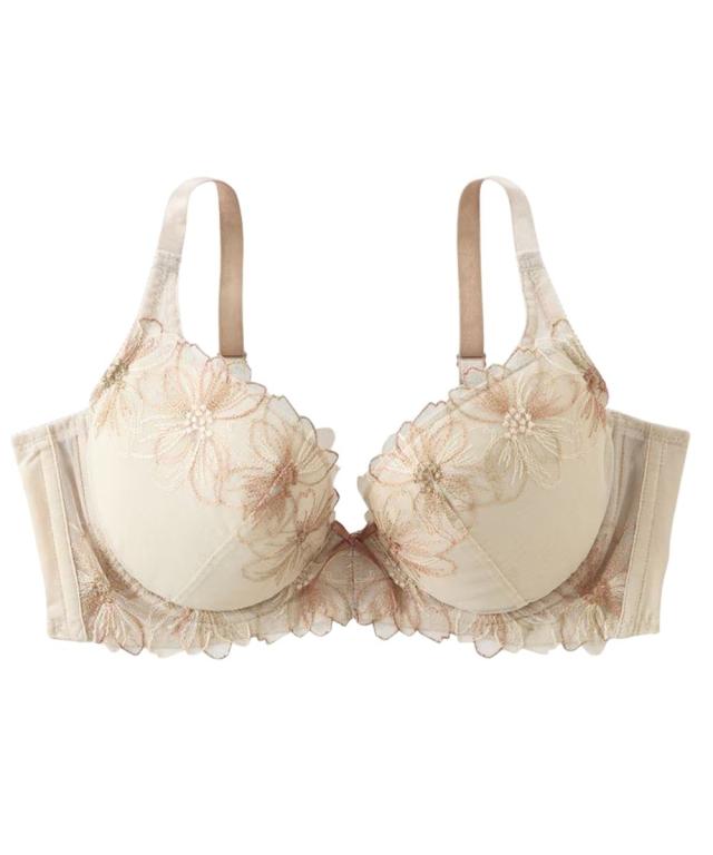 コスモス柄脇高刺しゅうレースブラジャー(トリンプ)