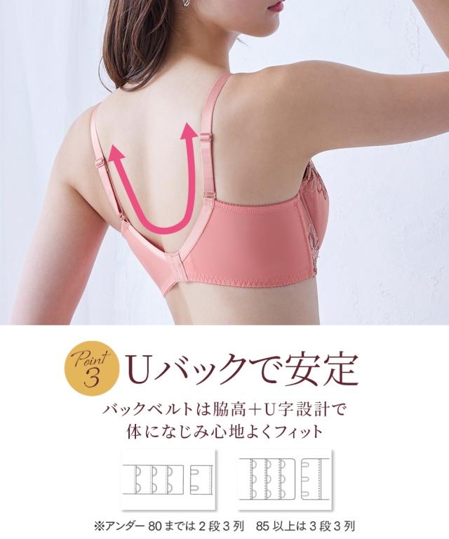 ニッセンとトリンプの共同企画!素肌を花で包まれるような華やかな着心地にうっとり。豪華刺しゅうレースのブラジャー。脇高仕様で脇のラインをすっきりキレイ見せ。身生地は良く伸びるストレッチ素材だから体にフィットして快適な着用感です。