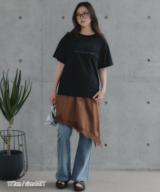 Tシャツ カットソー トールサイズ レディース 高身長 エンボス加工 プリント 接触冷感 Essenave 夏 大きいサイズ | M/L | ニッセン nissen