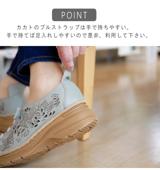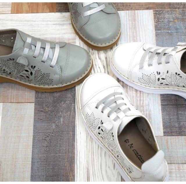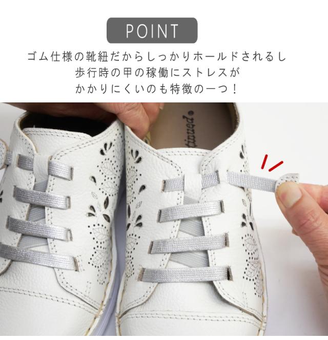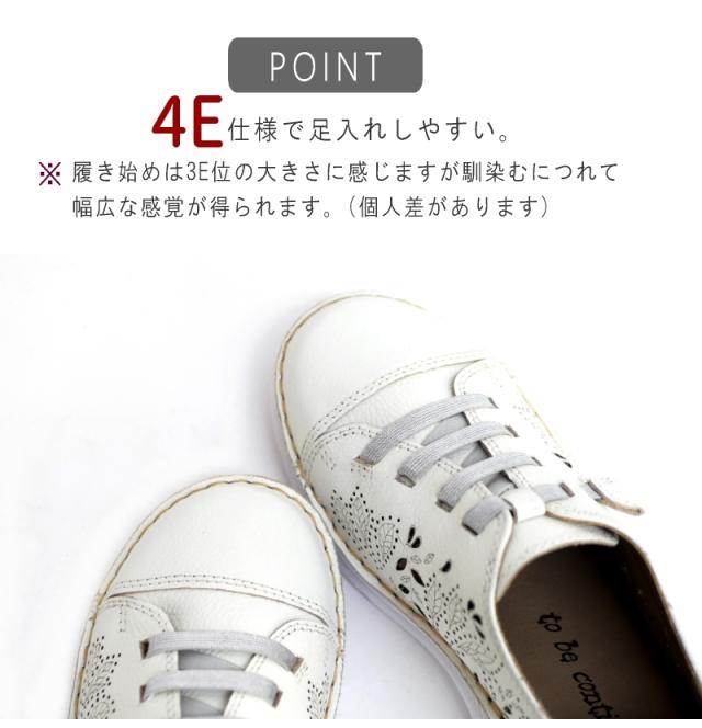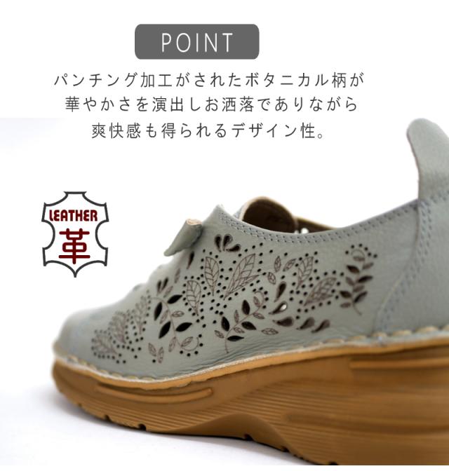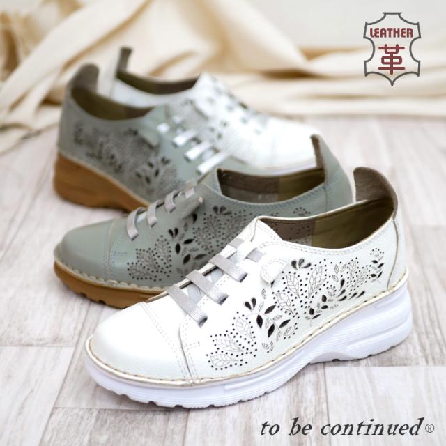 レースアップシューズ レディース 本革 レザー パンチング ボタニカル柄 超軽量 ゴム紐 4E 幅広 to be continued ウエッジソール ラウンドトゥ 歩きやすい