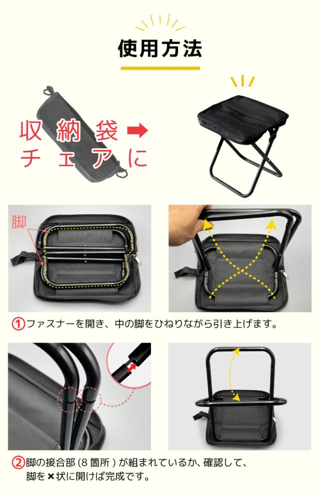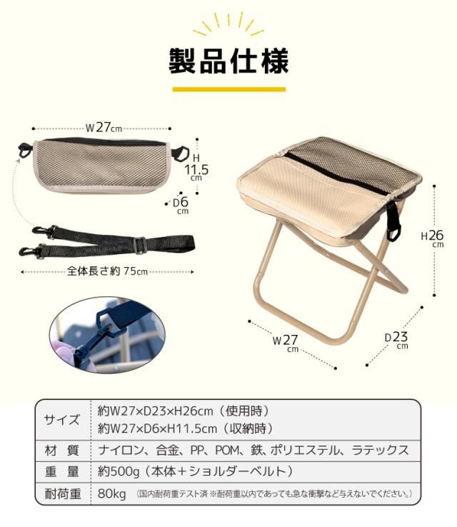折りたたみチェア 折りたたみ椅子 ショルダー付き アウトドアチェア ポケットチェア コンパクト 軽量 折り畳み スツール キャンプ 収納袋 ポケット収納 持ち運び 携帯 釣り フィッシング 海 山 いす イス 耐荷重80kg 運動会 お花見 花火大会 バーベキュー ポータブル