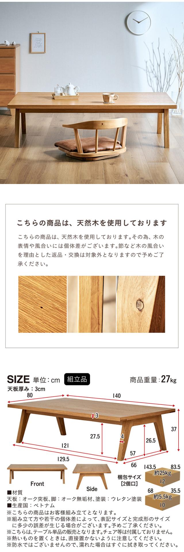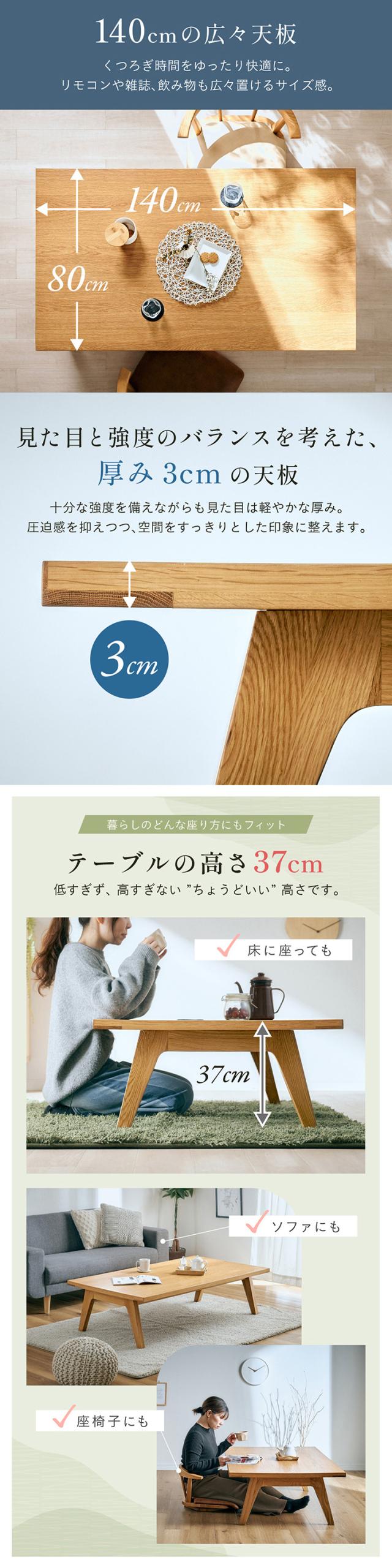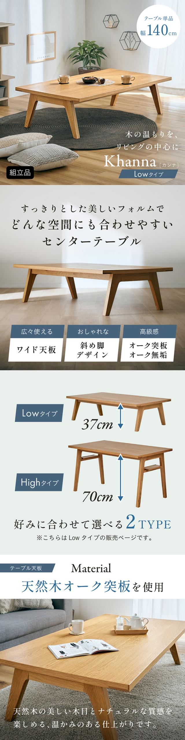センターテーブル おしゃれ ローテーブル 北欧 リビングテーブル 一人暮らし 幅140cm Khanna(カンナ) テーブル ロータイプ 木製 長方形 座卓 つくえ ナチュラル 天然木 リビング ソファテーブル 新生活
