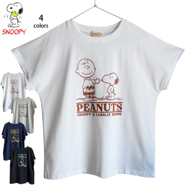 送料無料 Tシャツ 半袖 スヌーピー チャーリーブラウン シンプル 前面 バックプリント レディース メンズ アメコミ 白 黒 ネイビー グレー ペアルック ゆったり フレンチスリーブ 定番 薄手 フレンド