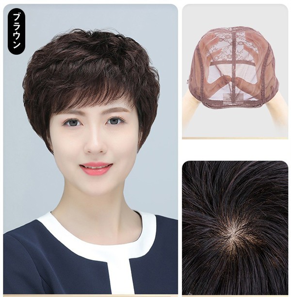 ウィッグ レディース ショート 人毛 フルウィッグ 女性用 自然 真髪 かつら 中高年 ママ向け ナチュラル 短髪 医療用 日常用 おしゃれ 通気性抜群 軽量タイプ 簡単装着 自然な仕上がり