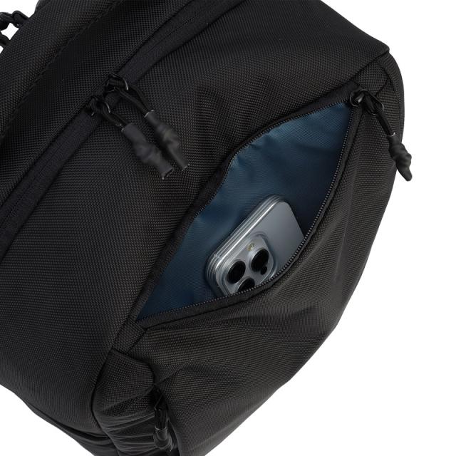 フロント上部・縦ポケットでスマホや財布も出し入れスムーズ。