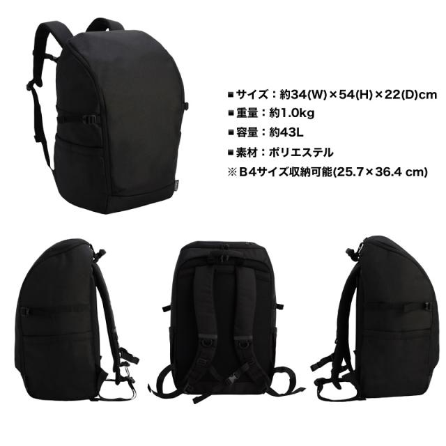 フルオープン仕様で荷物の出し入れがしやすい大容量43Lバックパック。