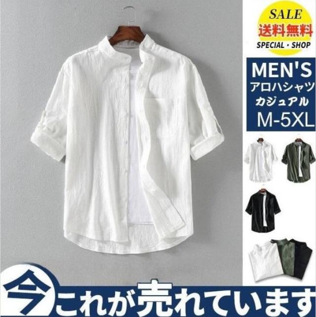アロハシャツ シャツ 開襟シャツ メンズ ボタンダウン カジュアル 通勤 薄手 白シャツ 無地 綿麻 大きいサイズ トップス カジュアルシャツ 半袖