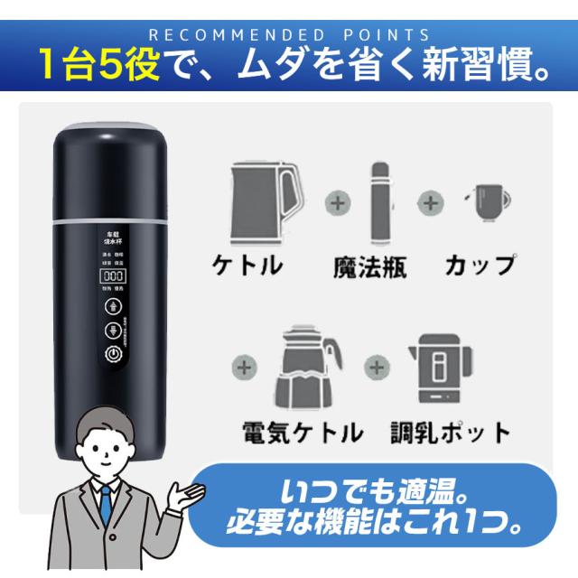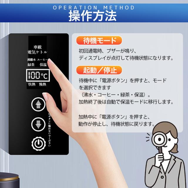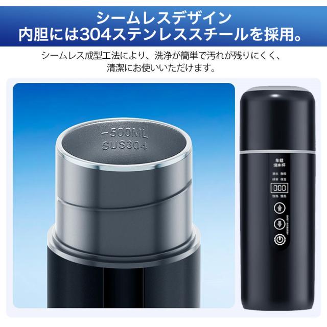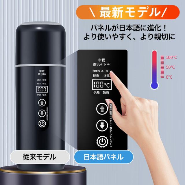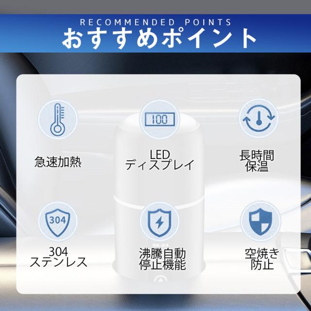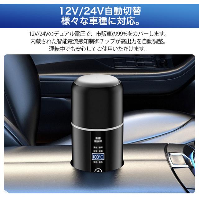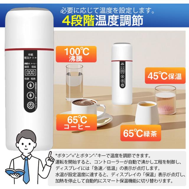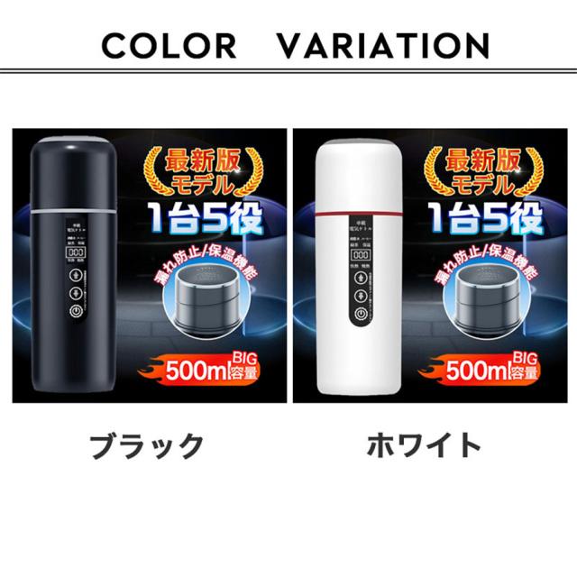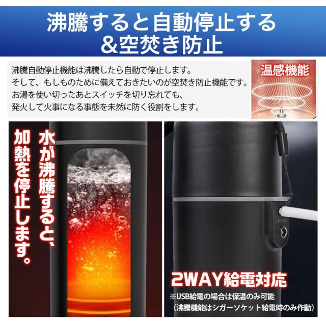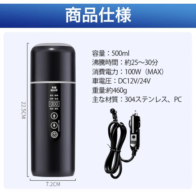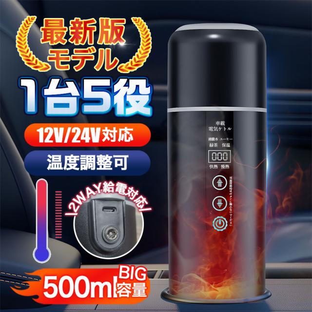 車載電気ケトル 車用 持ち運び 電気ケトル 携帯 500ml DC12V/24V 加熱 保温 大容量 空焚き防止 漏れない 湯沸し