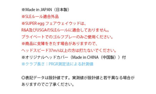※SUPER egg フェアウェイウッドは、R&A及びUSGAのSLEルールに適合しておりません。プライベートでのゴルフプレーのみご使用ください。