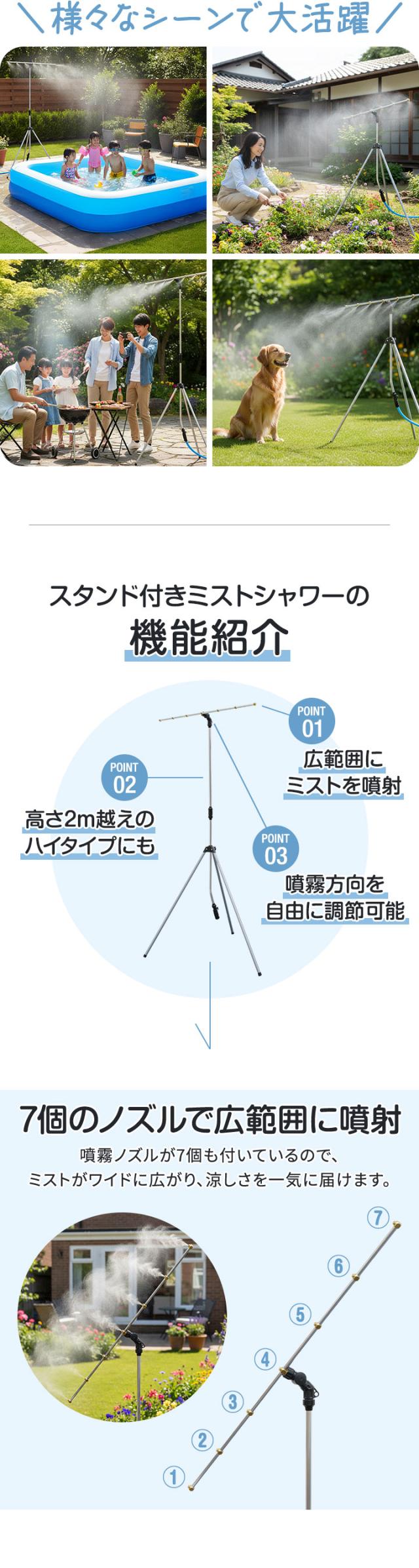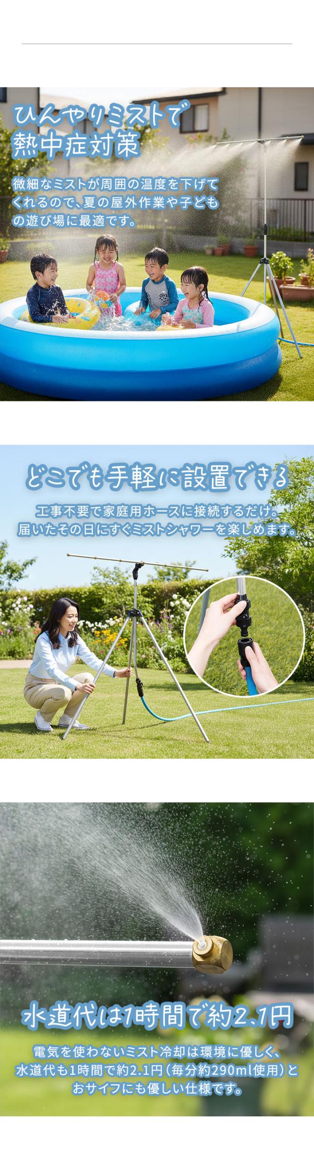 ミストシャワー ミスト散水 ミストノズル ミストホース 屋外ミスト ガーデンミスト クーリングミスト 冷却ミスト ミスト発生器 ミスト冷却装置 ミストシステム スプリンクラー 水道 水道接続 水やり 散水ホース 散水ノズル 散水機 ガーデニング用品 ガーデン用品 屋外用冷却 ベランダミスト テラスミスト 庭ミスト 軒下ミスト 日よけ対策 暑さ対策 熱中症対策 熱中症予防 夏対策 猛暑対策 打ち水 納涼 散水 霧状 クールダウン 冷感 涼感 涼しさ 涼しい ひんやり ヒンヤリ 冷却グッズ 冷却アイテム 屋外 野外 屋外暑さ対策 外遊び対策 ベランダ暑さ対策 庭暑さ対策 屋外イベント対策 アウトドア用品 キャンプ用品 BBQ用品 バーベキュー グランピング レジャー フェス イベント スポーツ観戦 屋外観戦 運動会 部活 体育祭 野外活動 店舗 店舗入口 学校 幼稚園 公園遊び 水遊び ガーデニング 子供用 ペット用 犬 猫 ペット暑さ対策 ペット冷却 ペット熱中症対策 ドッグラン 散歩対策 家庭用 業務用 簡単設置 工具不要 ワンタッチ接続 蛇口接続 ホース接続 延長可能 長さ調整 自由設置 節水 エコ 省エネ 水道直結 高圧対応 微細ミスト 細かい霧