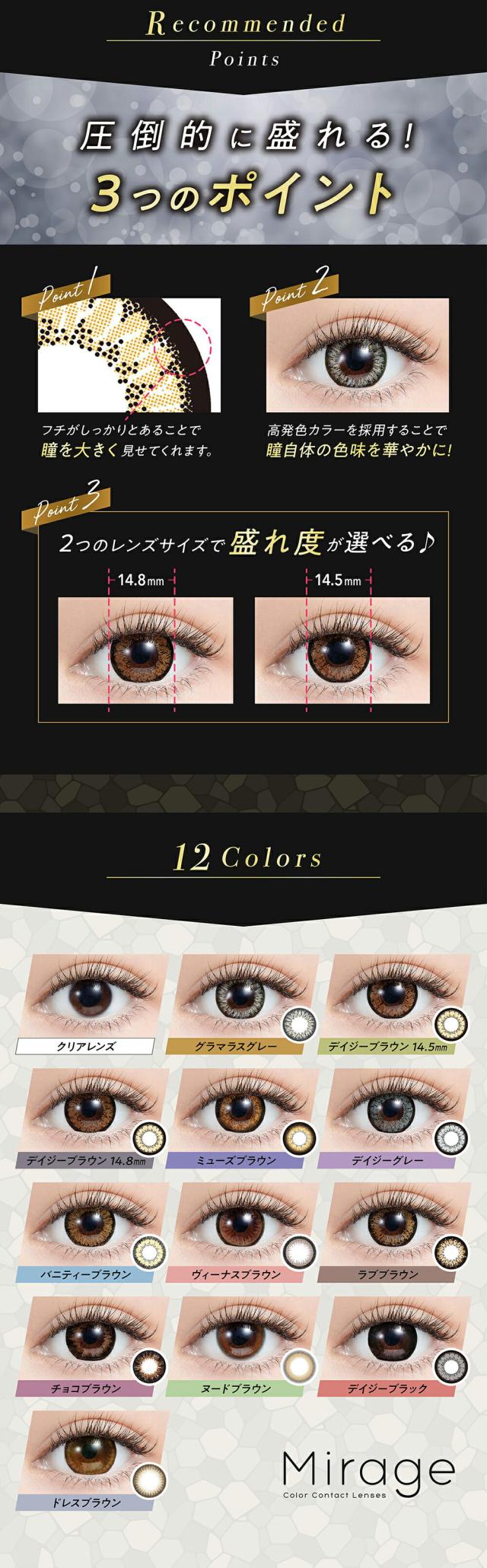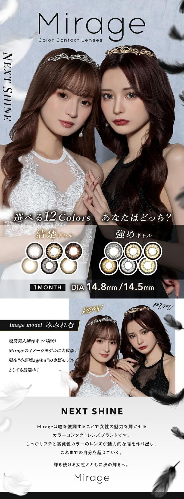 カラコン 1ヶ月 Mirage 1箱2枚/3箱 ミラージュ 1month ワンマンス マンスリー 度あり 度なし カラーコンタクト カラーコンタクトレンズ 14.8mm 14.5mm BC8.8 BC8.6 含水率38% 高発色 盛れる ギャル 韓国 みみれむ ブラウン グレー ブラック