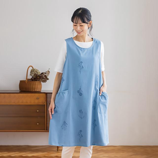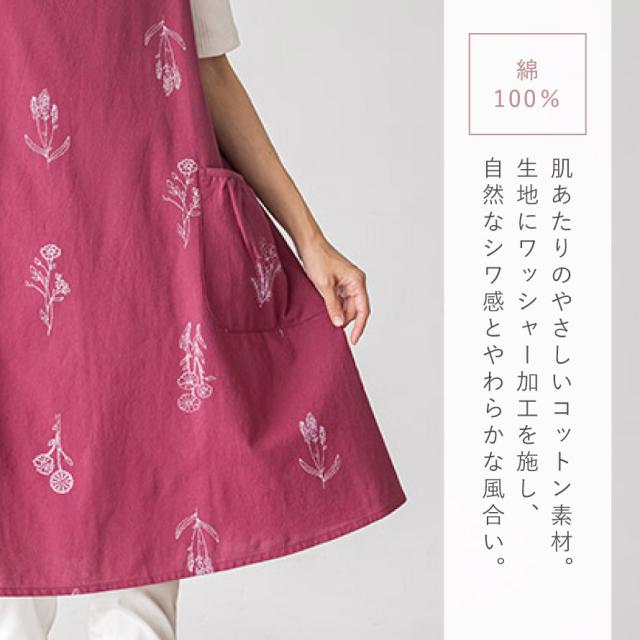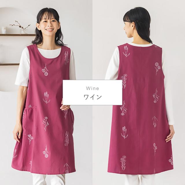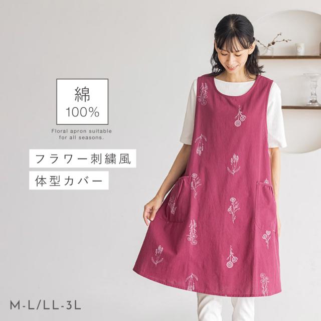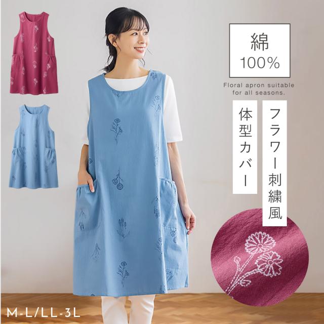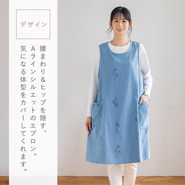 エプロン チュニック 綿100% レディース 母の日 ギフト チュニックエプロン aライン 着痩せ 袖なし かぶるだけ 主婦 シニア 刺繍調プリントチュニックエプロン M L LL 3L 大きいサイズ ゆったり 体型カバー 40代 50代 60代 70代 メール便対応