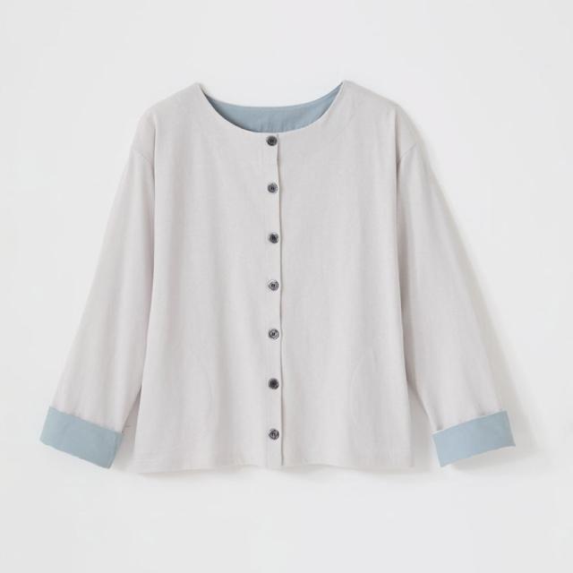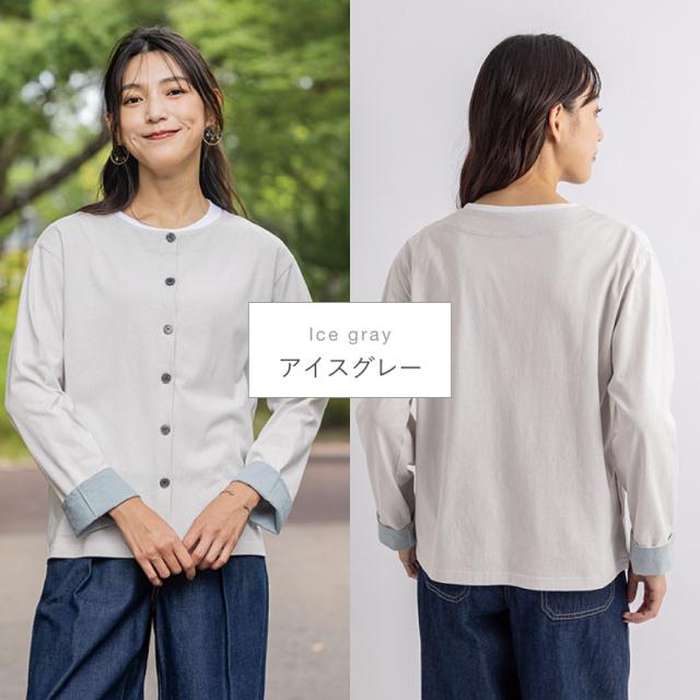袖口は折り返し仕様で、軽やかな印象に。袖を折ると八分袖ほどになり、抜け感のある着こなしも楽しめます。季節や気温に合わせてアレンジできるのもうれしいポイントです。