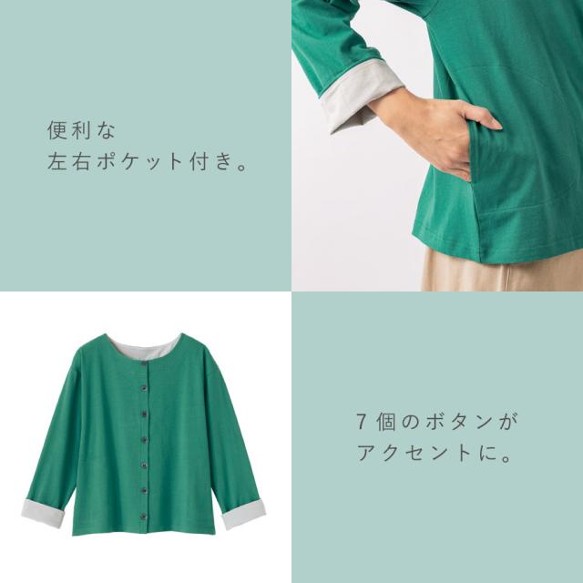カラーはグリーン、アイスグレー、チャコールの3色をご用意。季節の変わり目にも重宝する、上品で使いやすいカーディガンです。