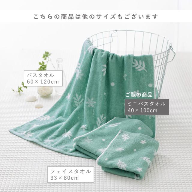 今治タオル ミニバスタオル バスタオル 小さめ 今治 北欧 おしゃれ 40×100cm タオル グリーン 日本製 綿100% 国産 今治タオルブランドミニバスタオル リーフプラス