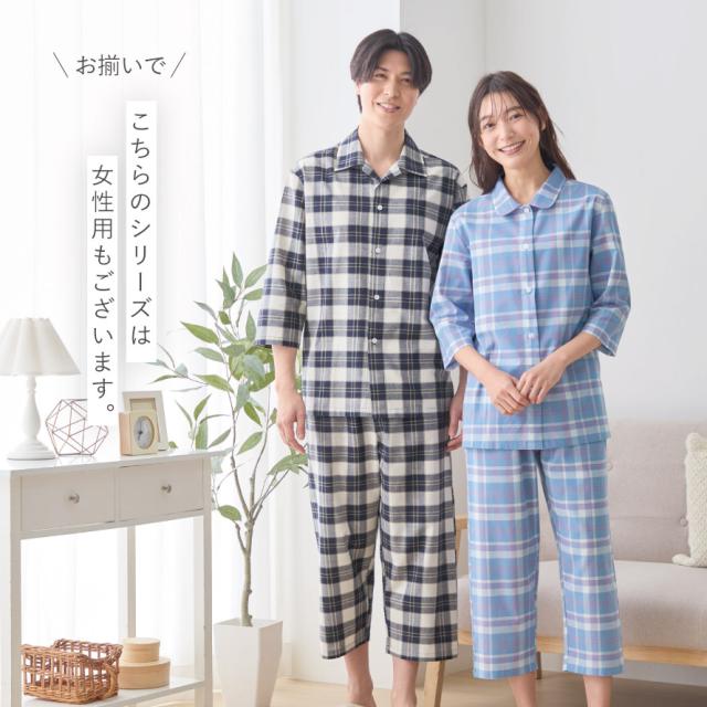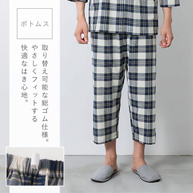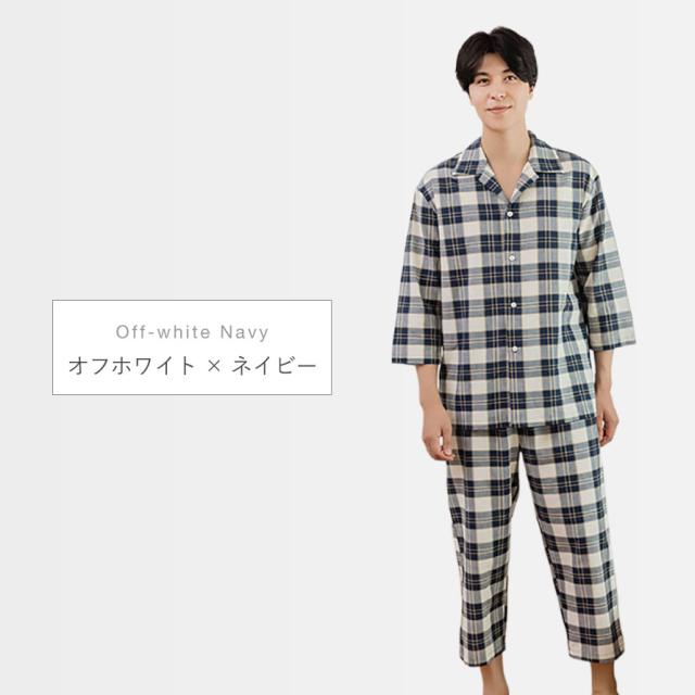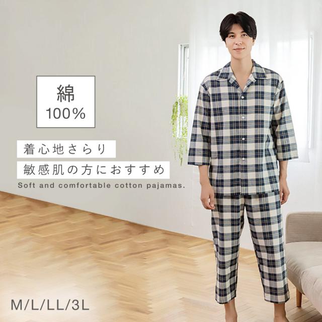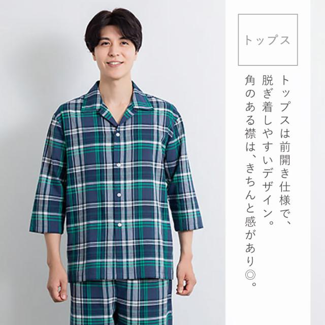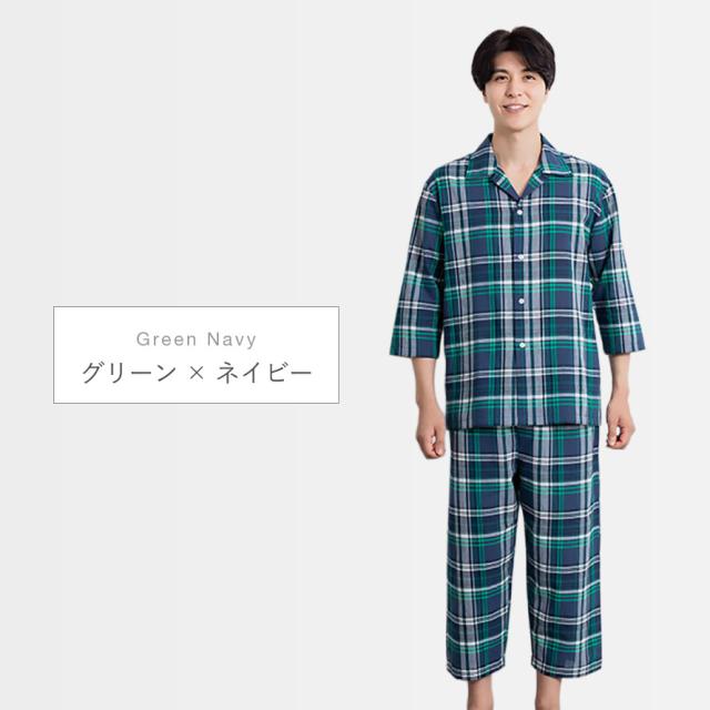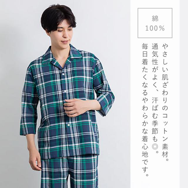 パジャマ メンズ 綿100,パジャマ メンズ 前開き,パジャマ メンズ 春,パジャマ,ルームウェア,前開き,七分丈,七分袖,綿100%,コットン100%,綿,コットン,100,肌に優しい,敏感肌,乾燥肌,先染め,涼しい,夏,春夏,ホームウェア,部屋着,ナイトウェア,寝間着,ねまき,寝巻き,ウエストゴム,総ゴム,ウエスト,ゴム,締め付けない,しめつけない,苦しくない,ゴム交換可能,取り換え,M,L,LL,3L,大きいサイズ,ゆったり,大きめ,大人,メンズ,男性,シニア,高齢者,お年寄り,おしゃれ,お洒落,オシャレ,グリーン,緑,ホワイト,白,ネイビー,紺,チェック,柄,