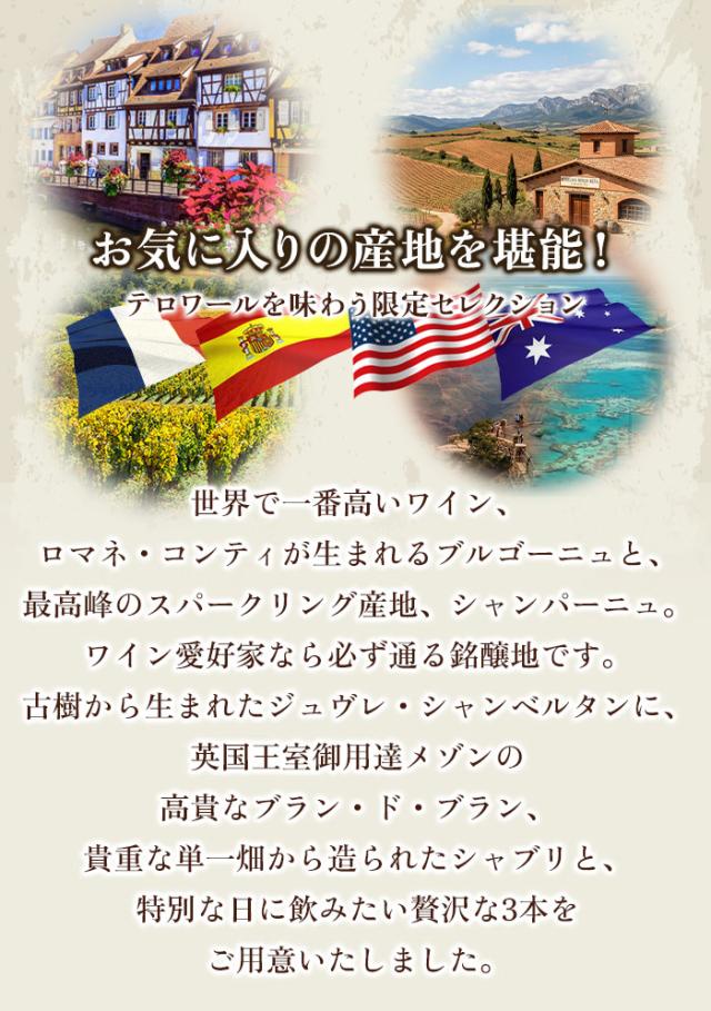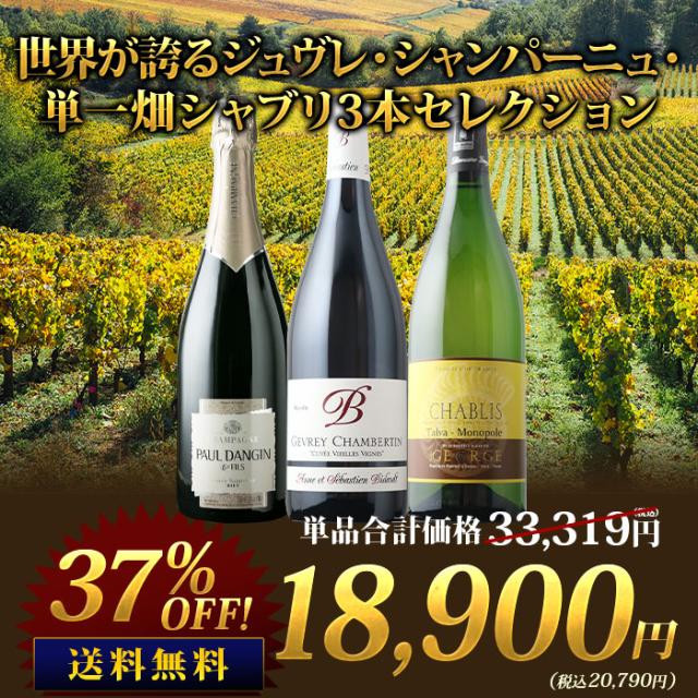 ワインセット ミックス 世界が誇るジュヴレ・シャンパーニュ・単一畑シャブリ3本セレクション 赤1本・白1本・シャンパン1本 送料無料【お試し ワインセット 家飲み ソムリエ 飲み比べ】
