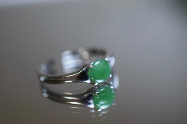 RG10-182 シルバー ミャンマー産 果緑 本翡翠 ヒスイ 指輪 フリーサイズ 金属アレルギー対応