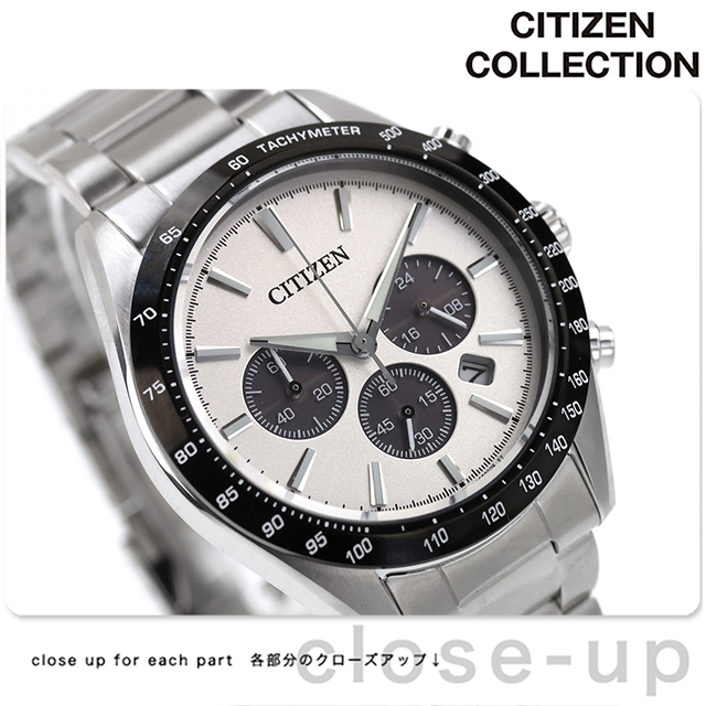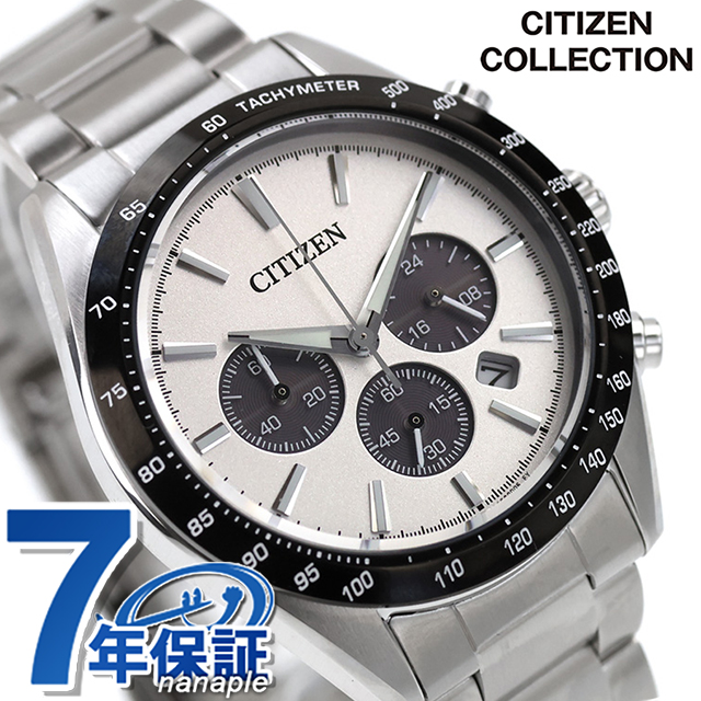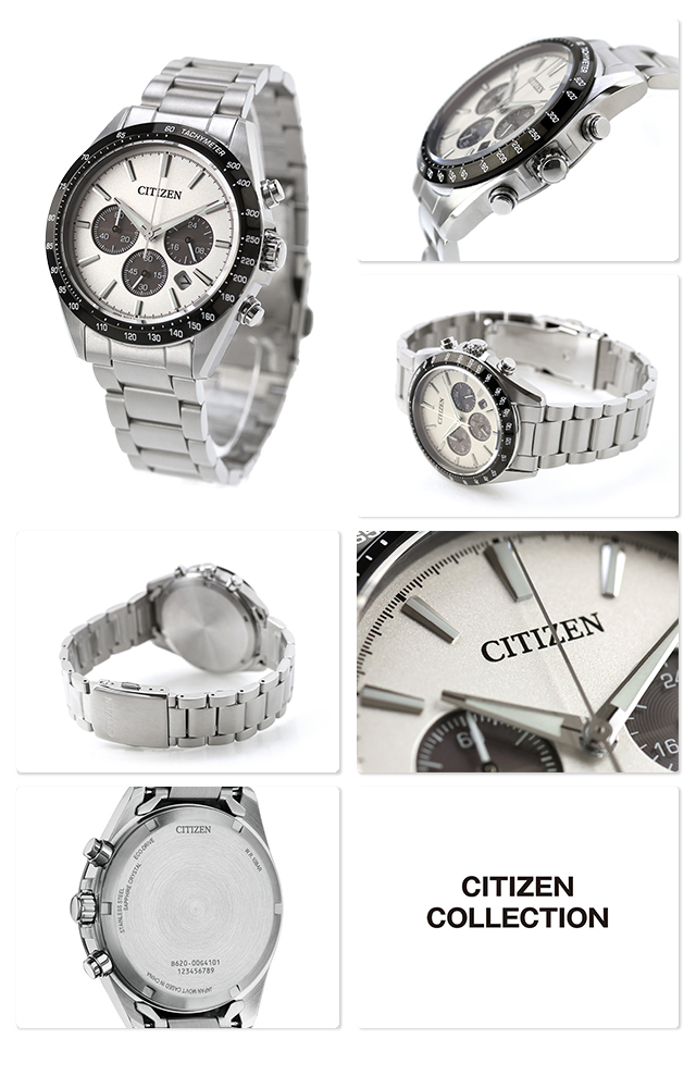 正規品 7年保証キャンペーン 送料無料 シチズン コレクション クロノグラフ ソーラー エコ・ドライブ メンズ 腕時計 CA4764-57A CITIZEN COLLECTION アナログ シルバー ◆スタンダードなエコドライブ クロノグラフの新モデル。基本的な機能を搭載しながらも、スポーティで洗練されたルックスを追求しました。金属素材を採用した、光沢のある発色の良い文字板が魅力。デザインのアクセントでもある3つのサブダイヤル部分が光を取り込み、電気エネルギーへと変換する仕様です。時分針とインデックスは、暗い場所でも時刻を読み取りやすい夜光付き。日付表示の開口部を広めにとって視認性を向上させるなど、快適な使用感を追求しています。ラグを太く短く、ベゼルをワイドに設計。タキメーターの数値表記を横書きにするなど、従来のモデルとは一線を画す仕上がりです。 発売日:2026年4月発売