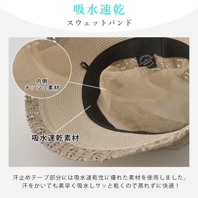 【2026年春夏新作】 レディース 春 夏 春夏 夏用 帽子 つば広帽子 つば広ハット 涼しい UV対策 日よけ帽子 日除け帽子 おしゃれ 紫外線対策 日焼け防止 折りたたみ 軽い 軽量 女性 サイズ調整可能 手洗い洗濯可能 SENSE OF GRACE | BELLA リーフレース ハット ht-bel