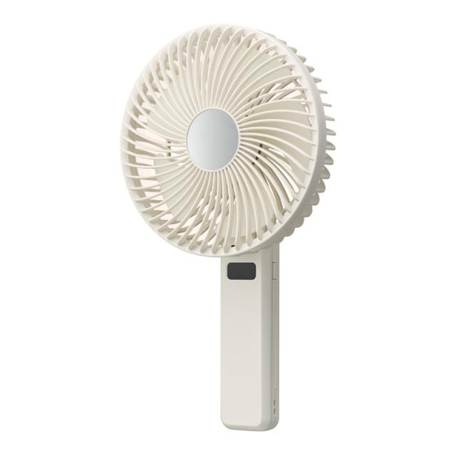 折りたたんでコンパクトに。ハンドルをたたんでデスクファンとしてもお使いいただけます。中心にミラーが付いた、簡単な化粧直しに便利なデザインです。