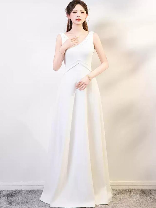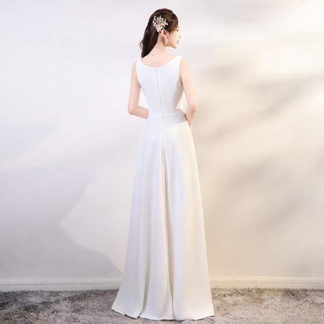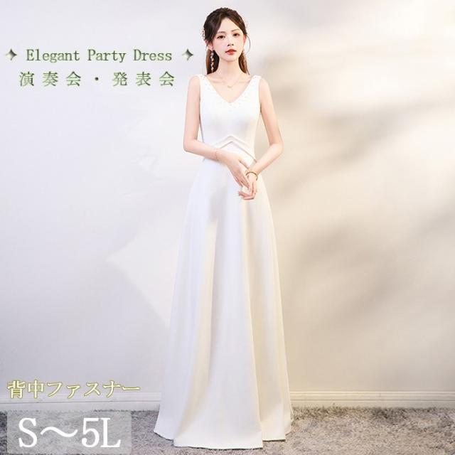 パーティードレス ロングドレス ホワイト ノースリーブ Vネック Aライン 背中ファスナー 上品 エレガント 発表会 演奏会 合唱 団体衣装 結婚式 二次会 カラオケ シンプル 大人可愛い 30代 40代 50代 S〜5L 大きいサイズ お呼ばれ ステージ衣装 dd161x0x0x7