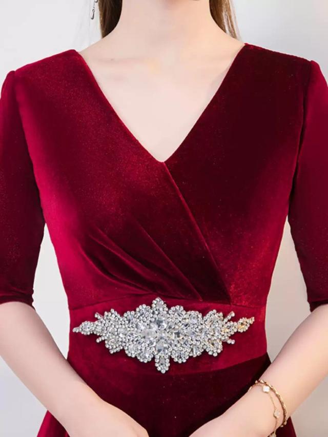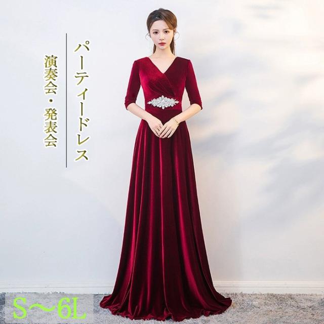 パーティードレス ロングドレス レディース ベルベット Aライン ワインレッド 五分袖 発表会 演奏会 合唱 団体衣装 結婚式 二次会 ステージドレス 成人式 同窓会 カラオケ 上品 エレガント S〜6L 大きいサイズ対応 30代 40代 50代 dd157x0x0x7
