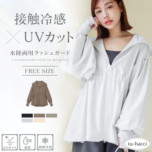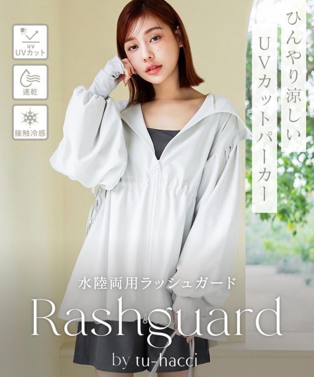 水陸両用ラッシュガード ウェストギャザータイプ レディース 体型カバー ダブルジップ 日焼け対策 接触冷感 UVカット 夏 プール レジャー【春新作】tu-hacci