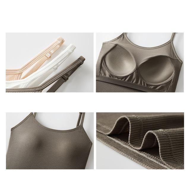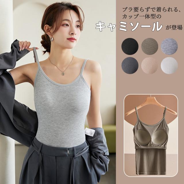 ブラトップ キャミソール タンクトップ カップ付きインナー オールイン ワンブラトップ リブフィット タンク リブフィット ナイト