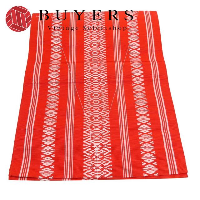 中古 名古屋帯 しつけ糸あり 八寸 正絹(金銀糸除く) レッド シルバー系 献上柄 モダン お洒落 和装 呉服 和服 きもの レディース 女性