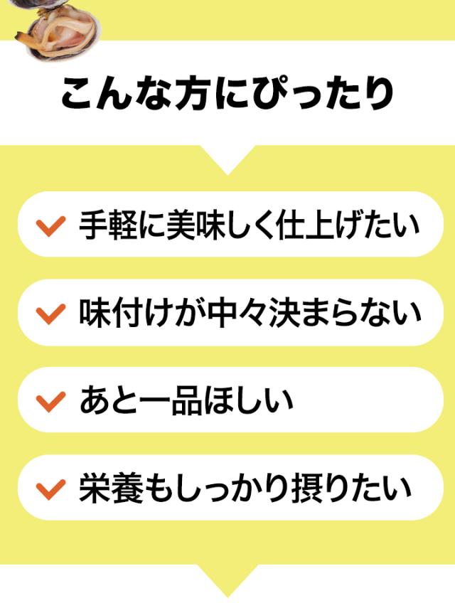 | あさり(中国)、PH調整剤 ※本製品で使用しているあさりなどの二枚貝には、かにが共生しています。 |