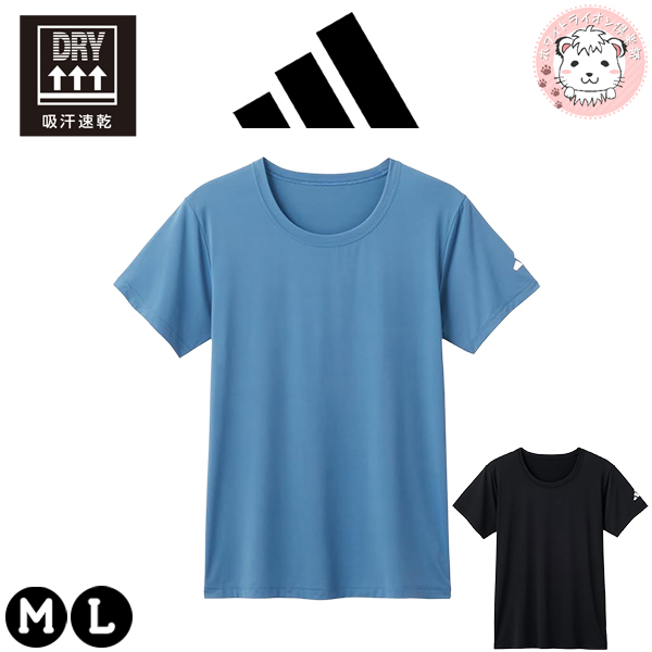 グンゼ adidas Tシャツ 半袖 クルーネック 接触冷感 吸汗速乾 M/L | ナイロンベア天竺 ロゴ メンズ 紳士 ナイロン 下着 肌着 インナー APR913A GUNZE アディダス