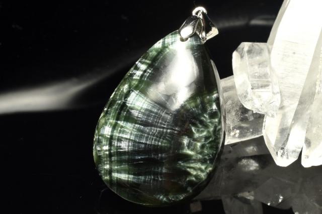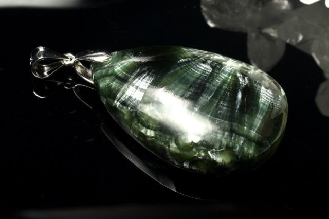 【1点物】シルバー925◇ロシア産 セラフィナイト 28x18mm ドロップ ペンダントトップ _PD1024
