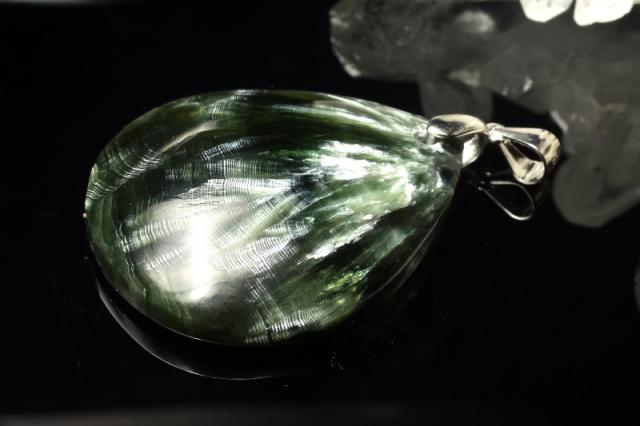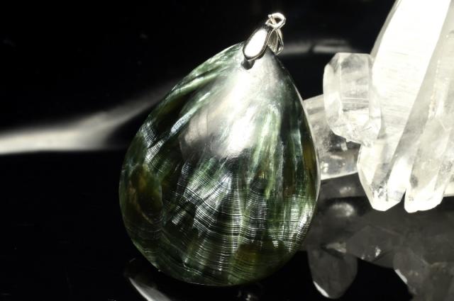 【1点物】シルバー925◇ロシア産 セラフィナイト 30x23mm ドロップ ペンダントトップ _PD1025