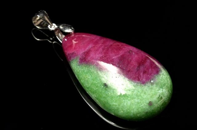【1点物】シルバー925◇美しい共生 ルビーインゾイサイト 29x15mm ドロップ ペンダントトップ 恋愛運・金運・仕事運_PD1045