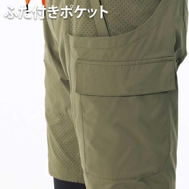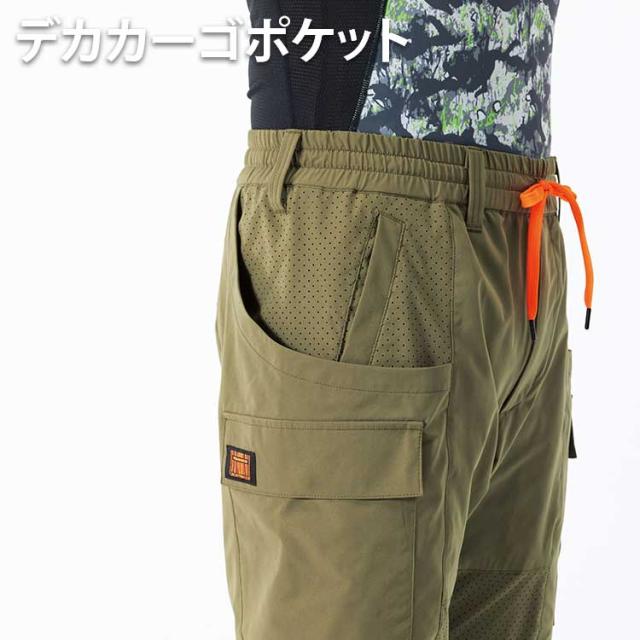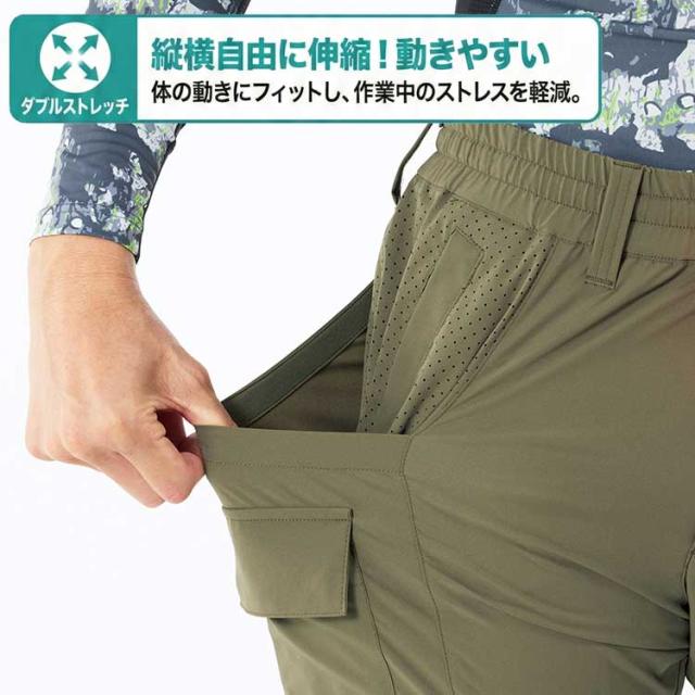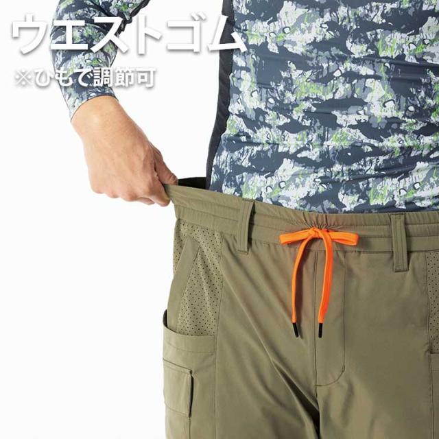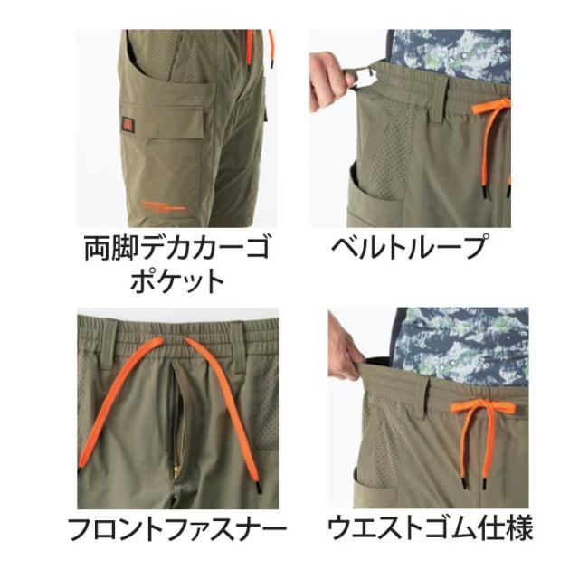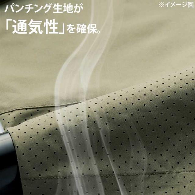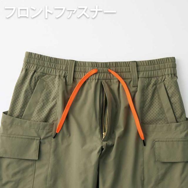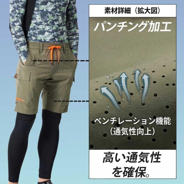 サラリとして肌ばなれが良く、ドライな着心地。パンチング加工で通気性抜群の軽量ハーフカーゴ。