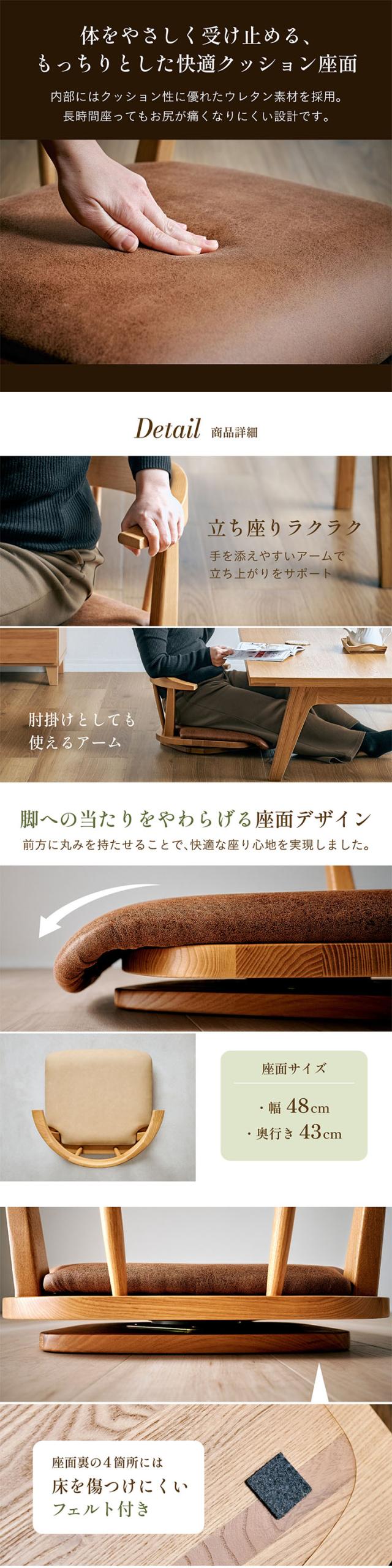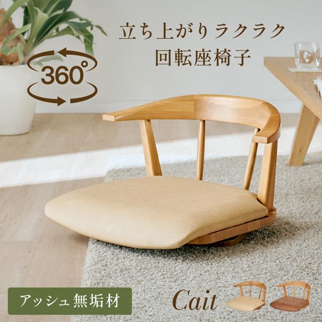 座椅子 コンパクト 肘掛け おしゃれ ローチェア リビング 木製 チェア 北欧 回転式 Cait(ケイト) 2色対応 座いす 1人掛け ロータイプ 天然木 アームチェア 回転椅子 リビングチェア 食卓椅子 回転