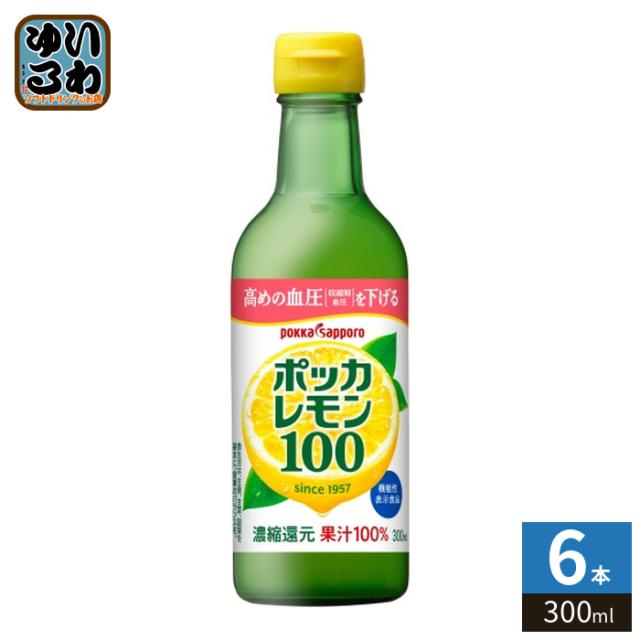 ポッカサッポロ ポッカレモン100 300ml 瓶 6本 (1本入×6 まとめ買い) 果汁 レモン クエン酸 機能性表示食品