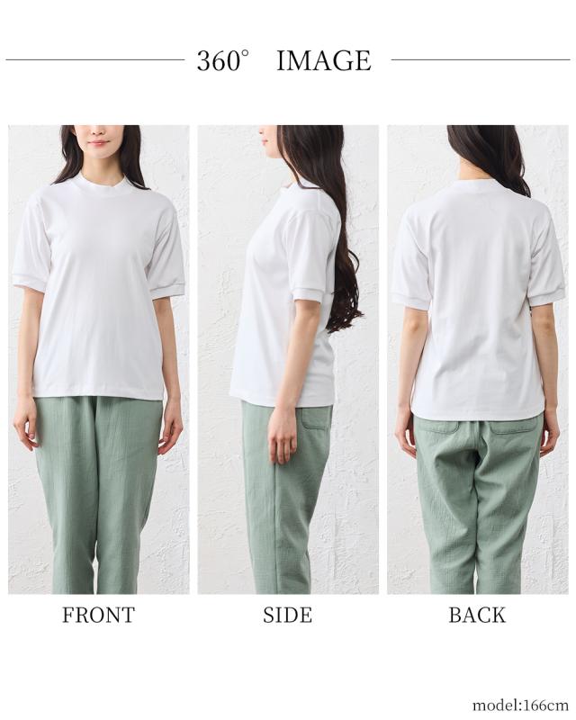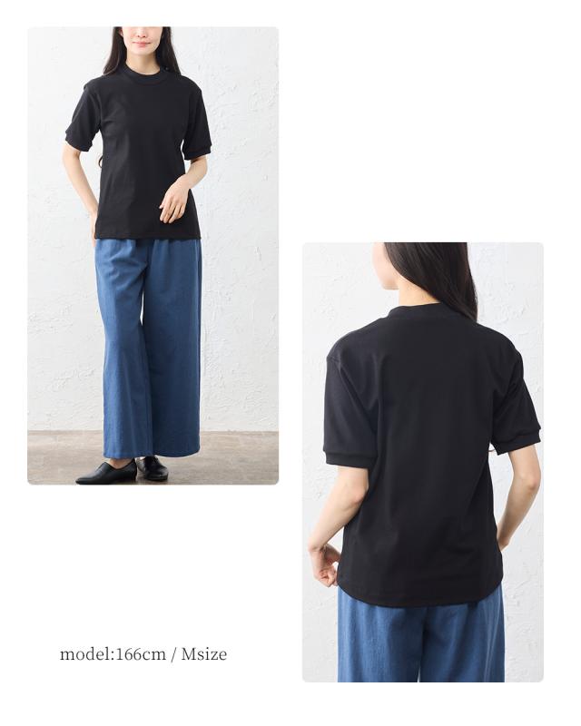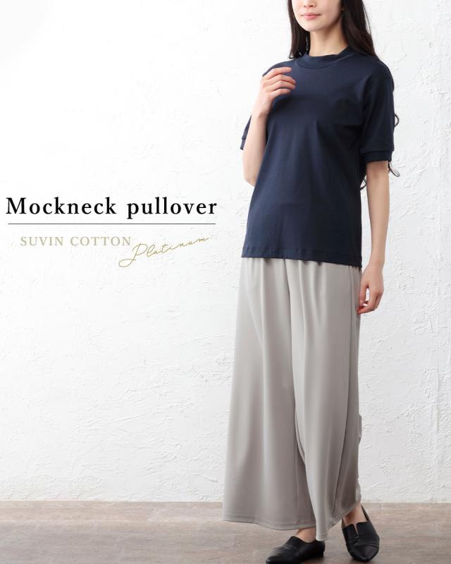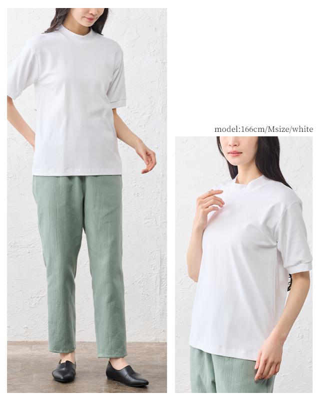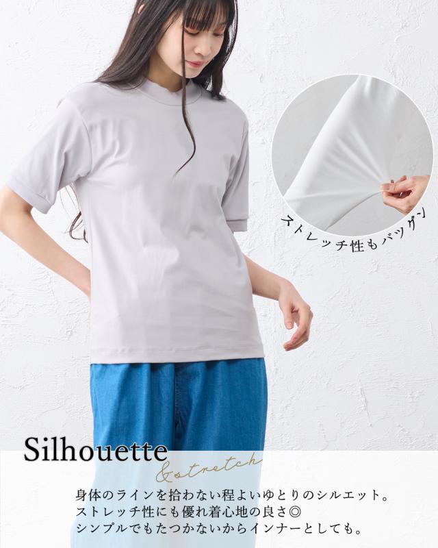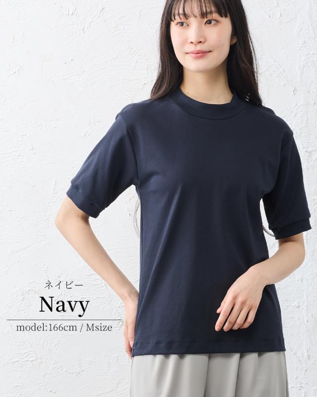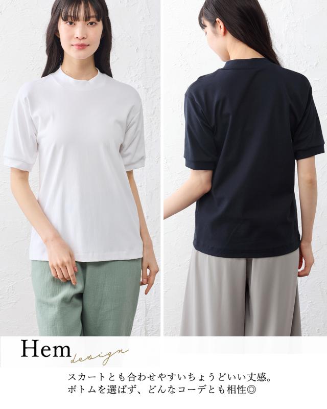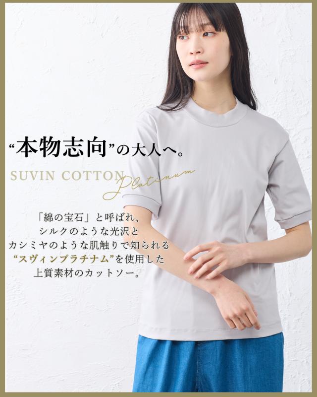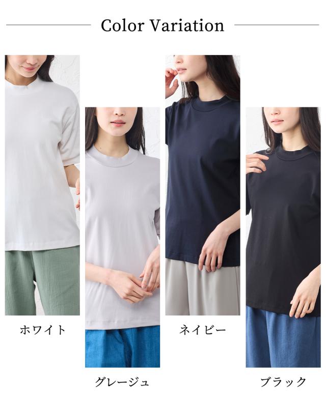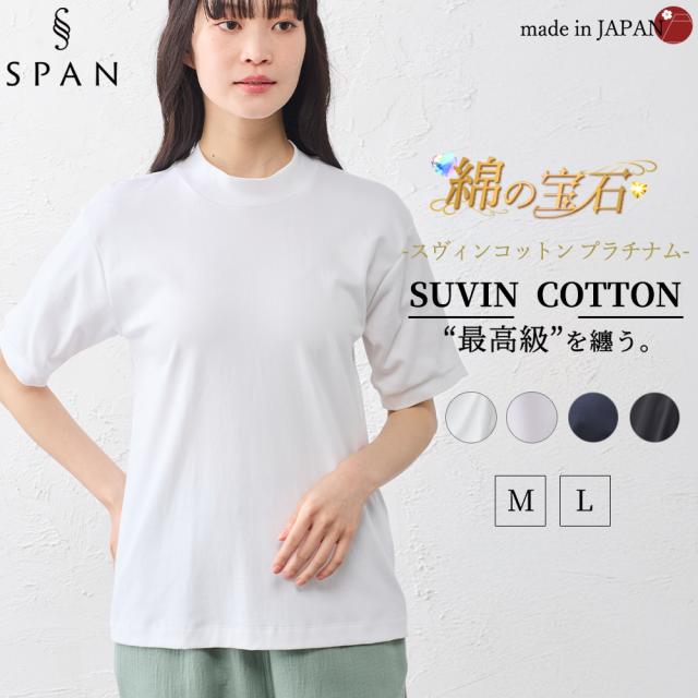 スヴィンコットン 綿の宝石 高級コットン 極上の肌触り モックネック 半袖 Tシャツ 日本製 レディース 綿100% なめらか 上質 カットソー インナー 無地 シンプル きれいめ 春夏 秋冬 通気性 吸湿 快適 着心地 人気 定番 大人