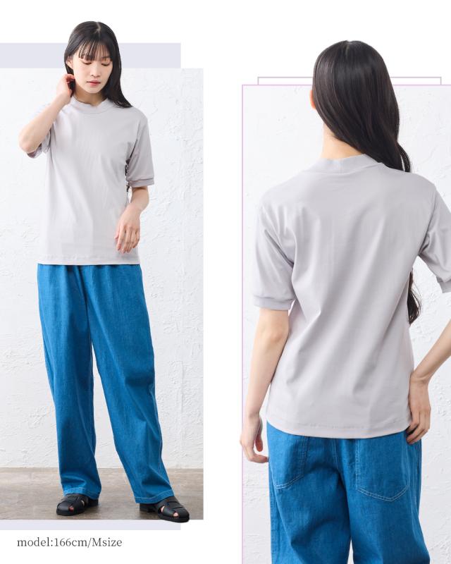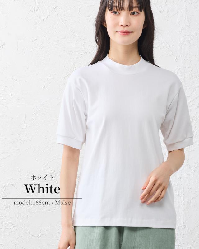 | 商品詳細/その他 | 詰まりすぎない高さで、首まわりをすっきりと見せるモックネックTシャツ。 しっとりとしたやさしい肌あたりで繊維の毛羽立ちが少なく、素肌に触れてもストレスのない着心地。 |