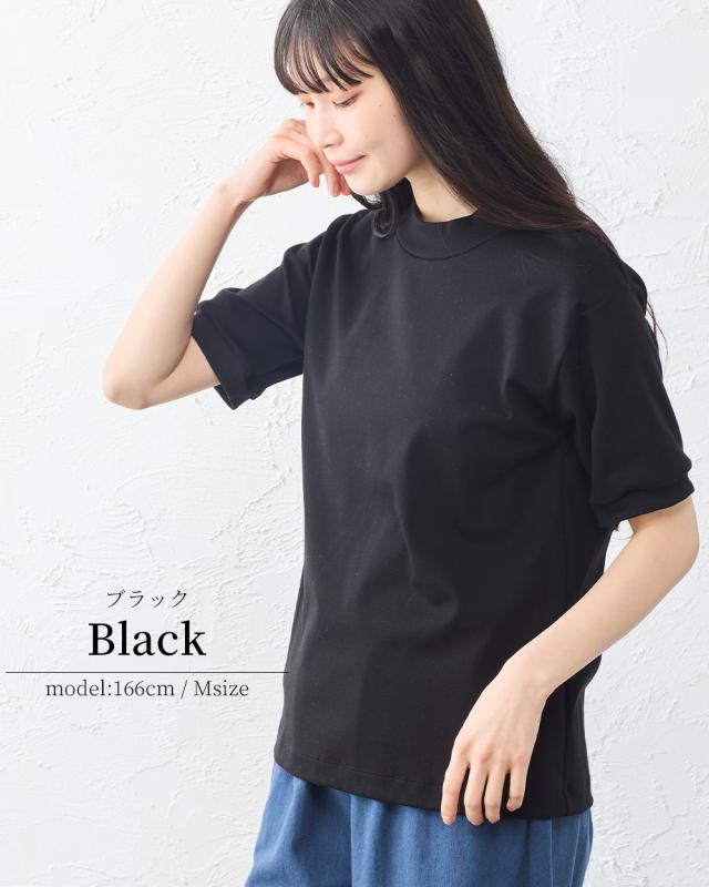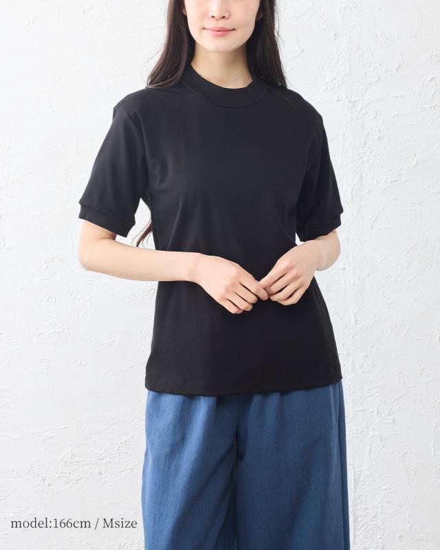 スヴィンコットン モックネック 半袖 Tシャツ レディース 日本製 綿100% 高級コットン カットソー インナー 無地 上質 なめらか 大人 ベーシック 春夏 秋 着心地 人気 定番