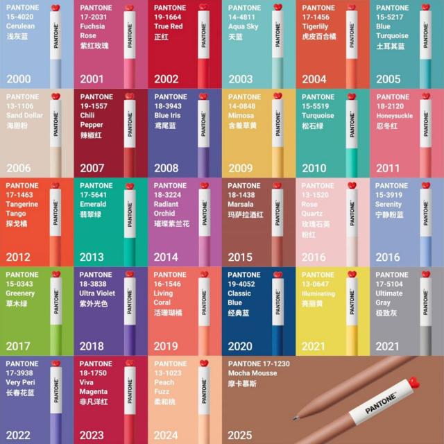 毎年PANTONE社が発表する「Pantone Color of the Year(パントン・カラー・オブ・ザ・イヤー)」2000年〜2025年受賞色をボディカラーに採用した、美しいプロダクトのゲルインクボールペンです。